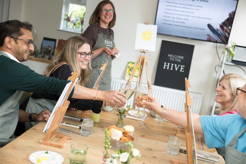 Of course, no creative session is complete without a little fuel. Hive serves tea, coffee, and homemade cake, and for special occasions, they’ve created the ultimate treat: a “Craft-ernoon Tea”, complete with a bottle of fizz to sip while you create.